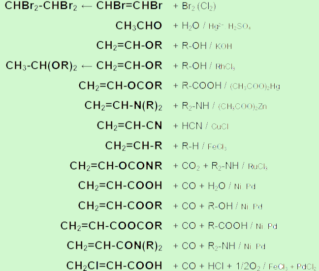 Основные химические реакции ацетилена (реакции присоединения, сводная таблица 1.):